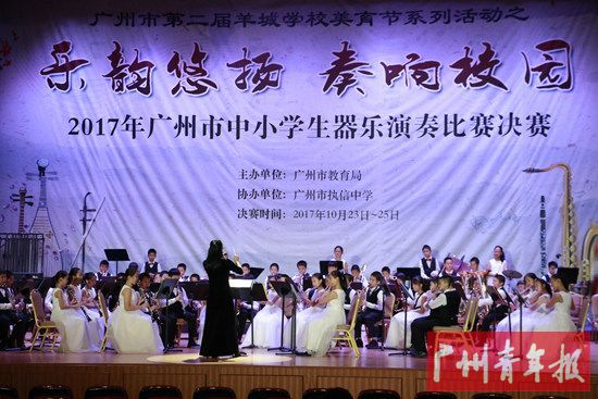 日期:[2017-10-29] 版次:[07] 版名:[广州教育]10月23日~25日,由广州市教育局主办、广州市执信中学承办的第二届“羊城学校美育节”系列活动之“乐韵悠扬 奏响校园”广州市中小学器乐演奏比赛市级决赛,在珠江宾馆会议中心举行。比赛共举办3天6场,分小学、中学和少年宫三个组别。