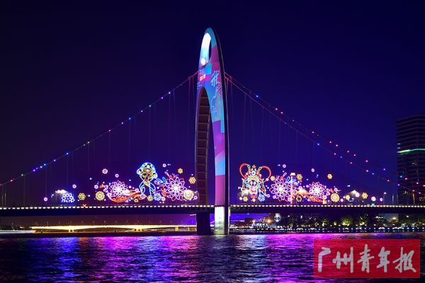 除了花城广场以外,珠江航道的数条大桥均被灯画装扮。