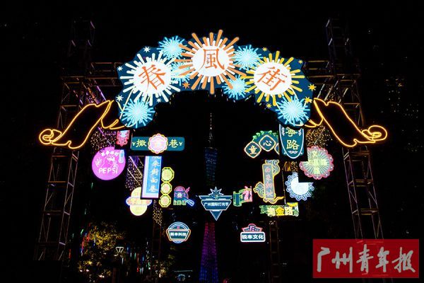 灯光作品《粤夜越精彩》,不少老街地名展示魅力广州。
