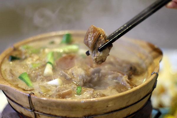 所谓不时不食,在这天气微微转冷、凉风习习的时节里,为食的老广们的味蕾立刻泛起对暖笠笠羊肉煲的渴求。而当中最出名、最地道的当数老广们熟悉的炭炉瓦煲羊肉。一大班亲朋戚友或三五知己围坐在红泥炭炉前,炉内的炭烧得正旺,时不时发出一点“啪啪”的炭裂响声,怀旧感油然而生。瓦煲里的羊肉焖煮得皮红肉嫩。身后凉风潇潇而过,身前羊肉暖心入体,这种冰火两重天的享受,殊非言语可以表达。