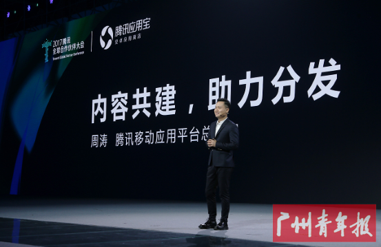 面向未来,周涛表示应用宝将推出“应用内容全域分发”,通过腾讯独有的内容生态赋能开发者,让应用下载进入社交、资讯场景,实现用户线上全场景的APP下载。