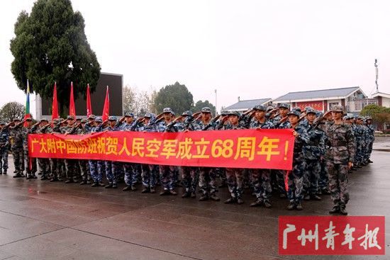 “说起‘双十一’(11月11日),很多同学马上联想到‘淘宝’、‘天猫’和各种‘买买买’。但其实11月11日还是一个非常重要的军事节日——中国人民解放军空军成立的日子。”采访中,广大附中的雷鹏俊教官严肃而不失幽默地说。