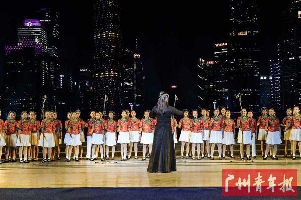 而我们作为广州未来的城市建设者,也参与到这件令世人瞩目的盛事中,纷纷担当起小信使、小记者、小志愿者的角色,为宣传广州城市形象、提升广州在国际上的知名度和影响力贡献自己的智慧和汗水。看,在2017 广州《财富》全球论坛的新闻发布会现场,财富小记者成为最吸睛的“一抹红”,他们与中外各大媒体记者一起提问,用手机拍摄或录音,展现了广州市中小学生良好的媒介素养;12 月6 日,在中山纪念堂举行的《财富》全球论坛开幕晚宴上,来自中山大学附属外语小学的朴嘉尔同学作为串场“小天使”出现,她以流利的英语与机器人对话,带嘉宾们穿越时空,向来自世界各地的客人讲述既古老又现代的广州故事,成为构筑中外友谊桥梁的小使者;12 月7 日,越秀区小云雀合唱团的同学们在“小蛮腰”(广州塔),以童声无伴奏合唱《欢乐的聚会》开启《风起花之城》城市招待酒会演出的序幕;随后,来自华南师范大学混声合唱团、广州市执信中学合唱团、天河摩星轮男童合唱团、海珠区小海燕合唱团等团体组成的400 人表演团队演绎风靡全国的广东歌曲《弯弯的月亮》,给中外宾客留下美好的岭南文化印象。