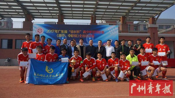 本报讯(记者 黄嘉欣)12 月6 日,2017 广东省“省长杯”青少年足球赛在肇庆市落下帷幕,华南师范大学附属中学(简称“华师附中”)足球队以2 比0 战胜梅县区高级中学队,获得本次赛事高中、中职组冠军。在小组赛中,华师附中足球队接连战胜罗定市廷锴纪念中学、广东南雄纪念中学、北京师范大学(珠海)肇庆附属学校,以三战全胜、零失球的战绩进入16 强,并以小组第一名的成绩出线。随后又以5比0、3 比0 的比分战胜了东莞高级中学、梅州中学。在半决赛中,华附队对战屡获全国冠军的强队深圳翠园中学足球队,在0 比2 落后且少一人的情况下奋起直追,最终以6 比5 的比分战胜对手,这也是华师附中首次挺进“省长杯”决赛并获得冠军。