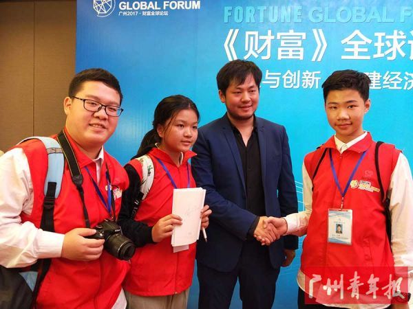 财富小记者林骏杰(广州市第十六中学):很多人认为《财富》全球论坛是大人们的事,为什么您会努力宣传,让青少年也参与其中?