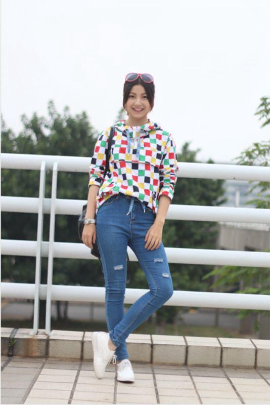 牛仔裤:作为万年不败的经典单品,牛仔裤可谓是春夏同吃,秋冬横行。似乎找不到任何一个季节不适合牛仔单品,深秋的广州早晚微凉,一条浅色牛仔长裤更是“安全牌”。但是剪裁、水洗、破洞的异同决定了一条牛仔裤的气质,今年冬天“破裤子”依旧流行,浅色系也是心梅这样的瘦腿MM的不二之选。