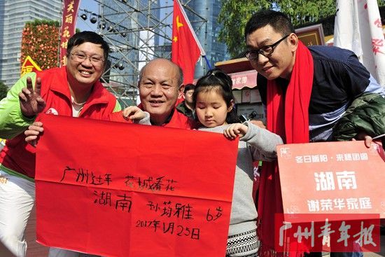 1月25日,团市委牵头联合十几家单位和企业,邀请20 户来穗务工青年家庭参加“冬日暖阳 来穗团圆”活动。20户来穗团圆家庭通过逛花城广场、参与志愿服务、照全家福、吃团年饭、领新春福袋等活动内容,深切感受到广州这座城市的温情和新春气氛。据悉,“冬日暖阳·来穗团圆”关爱来穗务工青年家庭活动是“冬日暖阳”青春关爱行动之一。2018年将继续举办,规模有望扩大至30户家庭。