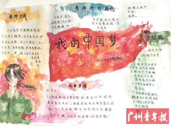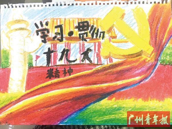 广州市美术中学通过手抄报创作、墙报绘画,制作班级十九大学习园地等,在校园内开展学习十九大精神系列活动。