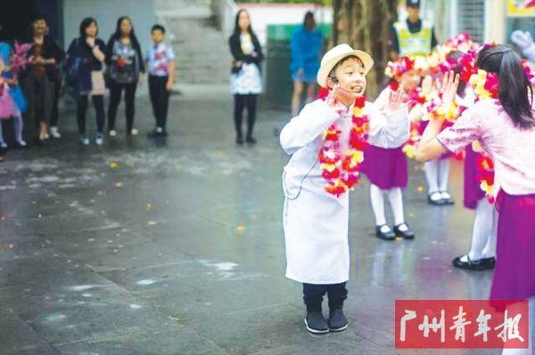 在越秀山举行的2018广府潮墟活动吸引了不少学生来“趁墟”,来自广东工业大学、华南师范大学等高校社团,以及越秀区少年宫、东川路小学、惠福西路小学、广铁一小等学生团队演绎了广府味十足的街头快闪(如图),包含了武术、粤剧、舞蹈、汉服表演等。除此之外,越秀区中小学经典美文诵读比赛优秀作品也在现场重新演绎,同学们用稚嫩的朗读声传递着丰富的广府文化元素,抒发了对广府文化的热爱。