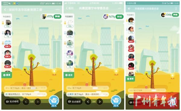 2月28日,中学团享会在线上发起“网上种植‘共青林’,为美丽中国添绿”植树特别活动,截至3月5日,线上参与报名的单位组织已有100多所。学校基层团委和团支部在支付宝“蚂蚁森林”服务选择合种“同事林”“同学林”,每日定时上线获取能量(浇水),并选择树种,“蚂蚁森林”环保项目发起单位将在任意一个荒漠地区种下真树,主办方将定期收集基层团委合种树苗、团支部合种树苗、个人树苗的成长截图以作展示。