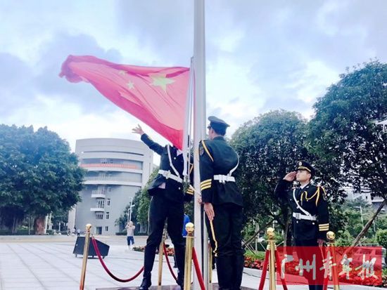 本报讯(记者 胡媛媛) 每周一早上的8点整,雄壮国歌声响起,国旗护卫队30名同学熟练地完成出旗、扬旗、升旗等一整套娴熟、刚劲有力的动作。五星红旗每周都在大学城的星海校园上空高高飘扬。