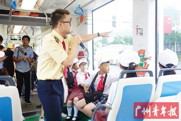 本报讯(记者 黄嘉欣)4月份,在广州市教育局的统筹部署下,广州市中小学开展了新时代广州城市发展主题研学活动。4月26日,番禺区50名学生来到广州汽车集团股份有限公司汽车工程研究院,领略扎根广州的世界500强企业非同凡响的创新实力。4月24日,80名海珠区来穗务工子女走访了代表海珠历史发展、新时代新成就的广州国际媒体港、科大讯飞集团、有轨电车、广州地铁博物馆和琶洲互联网创新集聚区等地,激发以广州为荣的小主人翁精神(见右图)。4月18日,广州市二中苏元实验学校的同学们来到位于黄埔区的广州亿航智能技术有限公司,了解惊艳世界的广州《财富》全球论坛8分钟无人机表演,以及背后蕴含的广州创新发展的动力。同学们亲身感受到新时代广州城市建设发展,尤其是强化枢纽型网络城市功能、吸引集聚全球资源要素、推动高质量发展等方面取得的丰硕成果,认识和感受到广州作为我国重要的中心城市、国际商贸中心和综合交通枢纽的独特魅力,激发为实现“四个走在全国前列”争当排头兵的责任意识。(详见2版报道)