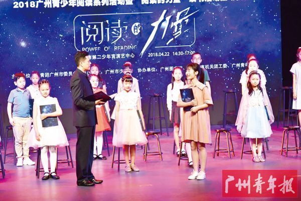 4月22日下午,由共青团广州市委员会主办的“书香羊城•爱尚阅读”2018广州青少年阅读系列活动暨“阅读的力量”读书活动启动仪式在广州市第二少年宫举行(见右图)。活动现场,团市委、广州图书馆共同发布《广州青少年阅读状况报告》,对广州青少年的阅读时长、阅读量、阅读内容方法、阅读投入费用、阅读态度、图书馆借阅主题等数据结果进行介绍。据悉,从4月到11月,团市委联合市直机关工委、市少工委,面向全市团员青年、少先队员、机关企事业单位青年、来穗务工青年等群体,持续开展“十本好书荐青年”评选、“书和远方”青年阅读分享汇、“不忘初心 牢记使命”广州青年学习说主题演讲比赛、“阅读的力量”朗诵活动、“我抒我读”打卡阅读接力新媒体传播等系列活动。