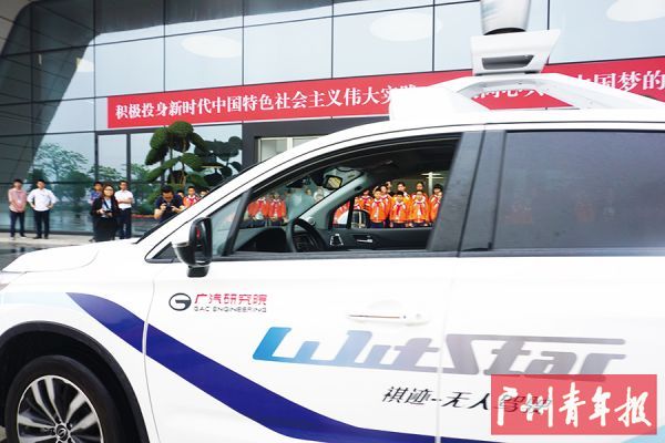 4月26日,番禺区化龙镇中心小学50名同学来到广汽集团新产品、新技术的研发地——广汽研究院,观摩“祺迹”GS4 PHEV无人车演示和自动泊车演示(见右图),参观了包含全消声室、混响室、整车消声室等场室的NVH实验室,还同有道路模拟实验室和碰撞实验室。五年级林泽钧同学告诉记者,他为广汽新能源无人驾驶汽车感到惊喜,“新能源汽车能较好地保护环境。”