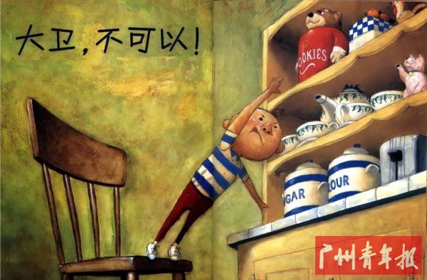 这本书的主角是大卫,一个只有几岁的小男孩。妈妈同样是隐在背后的主角,她无时无刻不在关注、关心、关怀着大卫的一举一动,常常挂在嘴边的一句话就是:大卫,不可以。为什么妈妈挂在嘴边的这句话,让人听来有些简单、粗暴、不舒服呢?