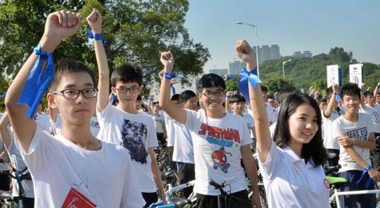 10月17日,第十四届“挑战杯”中航工业全国大学生课外学术科技作品竞赛“挑战蓝”骑跑宣传行动暨终审决赛倒计时30天暨誓师仪式在广东工业大学大学城校园举行,300余名志愿者骑着自行车,3000余名志愿者奔跑,戴着象征挑战杯志愿者精神的蓝丝带,从广东工业大学正门广场到创客空间,为挑战杯预热。