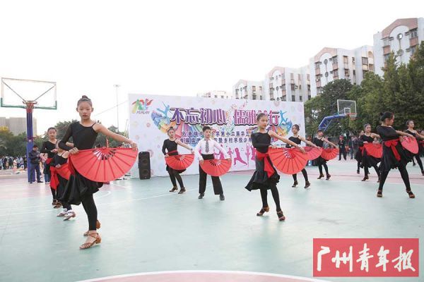 2017年12月21日,番禺区石碁镇中心小学艺术节上,拉丁舞蹈队员展才艺。