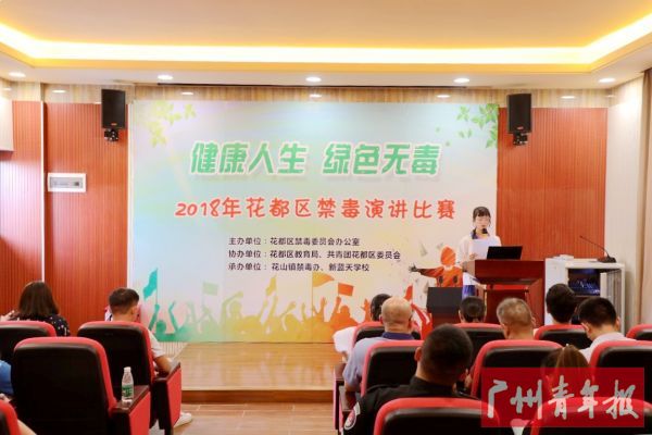 比赛设中学组和成人组,各选手紧紧围绕主题,用鲜活的事例、触目惊心的的数据,声情并茂地“演”示了毒品的严重危害,“讲”出了禁绝毒品的坚定决心!经过近三小时的激烈角逐,广州民航职业技术学院赵屹男荣获成人组一等奖。在全国禁毒演讲比赛广州赛区选拔赛中,赵屹男又代表花都区青年禁毒志愿者参赛,将“禁毒”的演讲主题与自己的专业结合,思考如何在安检过程中发现毒品,最终斩获成人组二等奖!