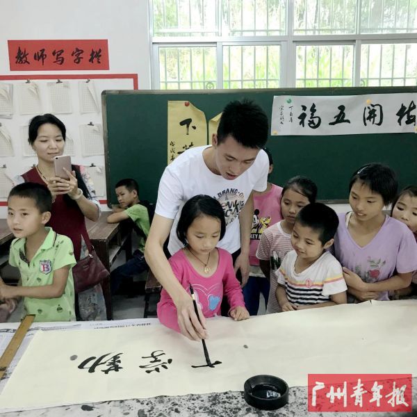 当天,团员代表还与孩子们联合创作了“勤学苦练、立志成才”的毛笔书法作品,看着孩子们一笔一划的认真劲,到访的团员代表纷纷表示,自己获得了极大的鼓励和正能量。