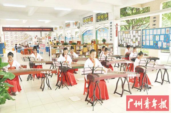 上课铃声响起,综合楼的舞蹈室内同学们在苦练基本功;航模室内大家三三两两聚在一起调试程序;广绣室,广绣第一批非物质文化遗产传承人梁雪珍正专注地指导学生穿针走线……据了解,2017年,学校还挂牌成为番禺区的“曲艺文化传承基地”,做到既为少年儿童服务,又传承本土文化。