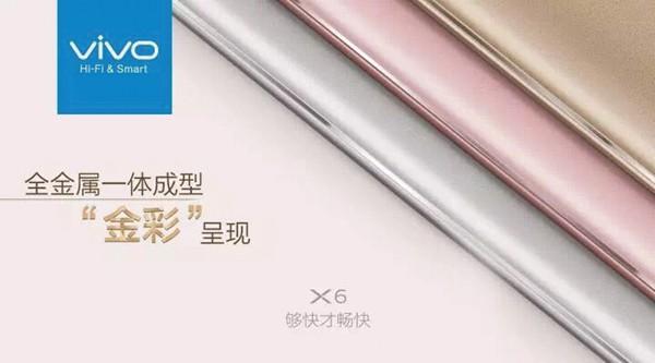根据最新曝光的资料,vivoX6颜值爆表,性能表现可圈可点。外观方面,从曝光的图片来看,全金属一体成型机身,有金色、银色、玫瑰金等三种色彩,性能方面搭载4G大运存、急速指纹、双引擎闪充,使X6的充电速度为普通手机的两倍。