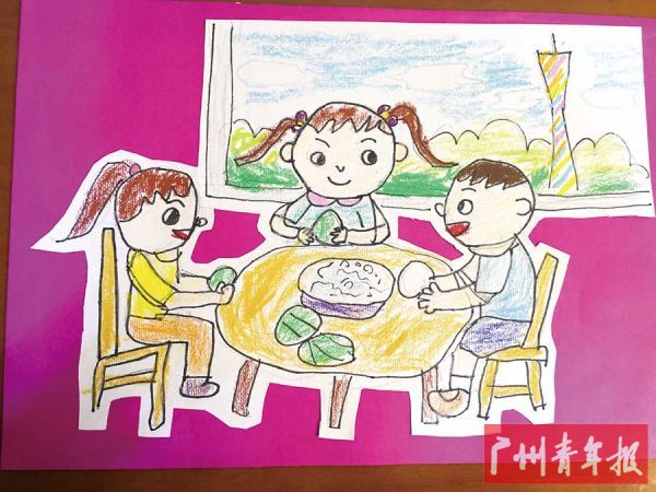 小编点评:三位同学的作品相当有创意!钰骞同学以“我们的节日”为题创作一首诗歌,描绘大家熟悉的节日场景,展现节日蕴含的人文风情。嘉悦和瑞珊同学以刚刚过去的端午节为题材,绘出端午节人们喜闻乐见的“放风筝”“包粽子”活动情景。广州塔元素的嵌入丰富了画面,更具广州特色;鸟儿叼着粽子飞翔,也展现了同学们天马行空的想象力。