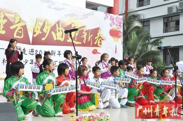 口风琴和笛子,都是有固定音高、音色较美、造价低廉又轻便,且学生爱学、易掌握的乐器。九龙第一小学乡村学校少年宫的口风琴、笛子社团,通过教学培养学生的音乐听觉和乐感,激发学生对学习音乐的兴趣,不仅提高了学生的识谱能力,锻炼其肢体协调能力,更陶冶了情操,提高学生的综合素质。口风琴、笛子社团由马丽霞、陈杏娟老师任教,目前有学员45人。2016年4月,该社团在“中国梦·青年智”2016年黄埔区学生社团评比中表现突出,成绩优异,被评为优秀社团。采访中,马老师说:“相信在以后的学习中,同学们经过刻苦训练,口风琴、笛子的演奏技巧一定会日臻完善,并从中享受到音乐的美感和乐趣。”