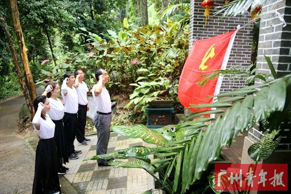 李踔带领队员们在党旗下重温入党誓词,庄严宣誓