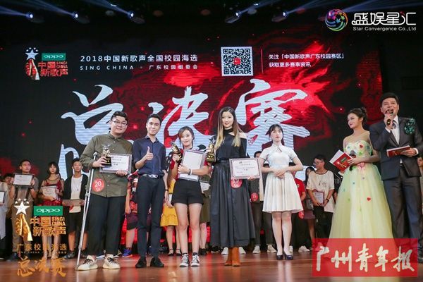 日期:[2018-07-12] 版次:[A06] 版名:[广告]7月7日下午,由灿星制作、盛娱星汇主办,华粤文化承办的第三季《中国新歌声》广东校园海选总决赛在广东白云学院东校区礼堂举行,来自十个城市的40位精英学员,经过4个多小时的激烈角逐晋级10强选手。广州赛区的蔡晓芸凭借一首《苏三说》折桂,亚军张嘉怡凭借青春活力的造型斩获最受欢迎人气奖,并成为第三季《中国新歌声》广东校园赛区形象大使,珠海赛区的李旭虓深情演绎的《假如有一天》获得季军。同时进入10强名单的有:蓝锋云、胡璐、黄美凤、李亮、张栩铭、陈梓桐、欧阳静纯,他们将代表广东校园赛区走向更大的舞台。