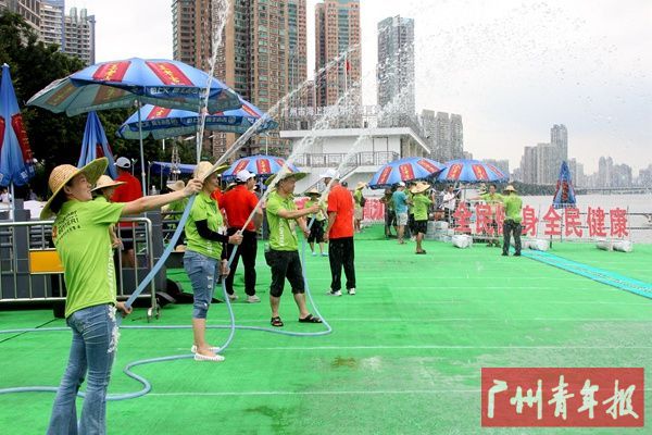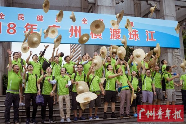 日期:[2018-07-19] 版次:[A08] 版名:[青视觉]随着市民代表周嘉威一声鸣枪发令,广州、佛山、河源、东莞、中山、肇庆、清远等7市方队率先从中大码头下水游渡。警卫部队、市直机关、总工会、教育系统、建设系统、青年志愿者方队,各区方队,社会各界方队等紧随其后,2000名游泳健儿组成40个方队,游向二沙岛星海音乐厅。7月13日下午,2018年广州横渡珠江活动在中大码头至星海音乐厅之间的珠江河段举行,活动的主题为“全民健身、全民健康”,数万市民群众在此过程中驻足观看,加油喝彩。