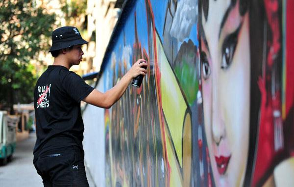 自7月份“青年绘”项目作为“传说广州·青春记忆”广州青少年岭南文化传承品牌活动以来,受到广大市民的好评和媒体的持续报道。10月20日,由广州市和众志愿服务中心、A+B涂鸦团队参与创作的“青年绘”二期首个以粤剧元素为主题的墙面在越秀区东川三街与广大市民见面。说起越秀,大家肯定会想到粤剧团、粤剧茶楼、粤剧票友……地处大东街的越秀老街区吸引来不少参观者,记者了解到,现场年轻的涂鸦艺术家们,通过现代的漫画涂鸦方式,热情完美地演绎使现代艺术与传统文化的结合。