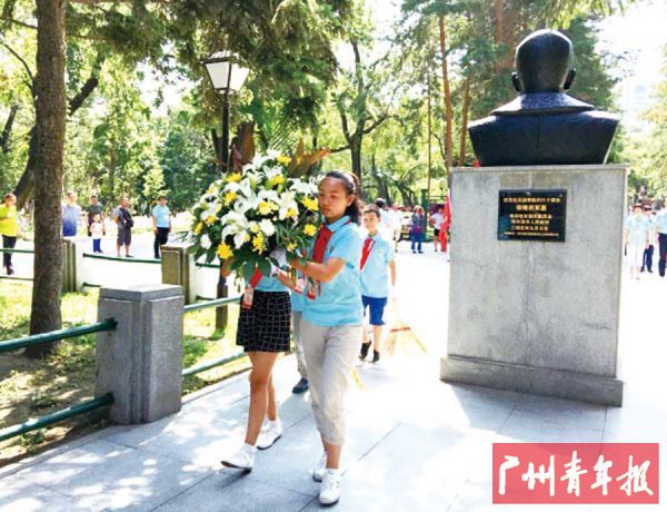 尚志大街、一曼大街、兆麟街……走在哈尔滨这些以抗日英雄命名的大街小巷,随时随地能跟那些以生命为代价,彰显那个年代民族的尊严和骨气的仁人志士“擦肩而过”,民族气节油然而生!8月3日上午,同学们来到位于兆麟街88号的李兆麟将军纪念馆,缅怀其不畏强暴、英勇抗敌的一生,随后到兆麟公园的李兆麟将军纪念碑祭奠,与英雄作穿越时空的心灵对话……同学们向纪念碑敬献花圈,《我们是共产主义事业接班人》的嘹亮歌声,在纪念碑上空回荡……