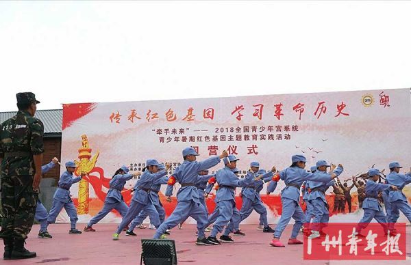 8月1日,上海、南京、广州、南昌的同学和家长参加在上海市青少年活动中心青年广场举行的2018全国青少年宫系统青少年暑期红色基因主题教育实践活动的上海站开营仪式。
