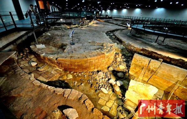 值得一提的是,在南越王宫遗址之下为秦造船遗址。在王宫遗址之上又有东汉至民国的各朝代历史遗迹。它们犹如一部无字的史书,向人们诉说着广州城市以此为中心向外扩展变迁的历史,是了解广州城市发展的重要窗口。