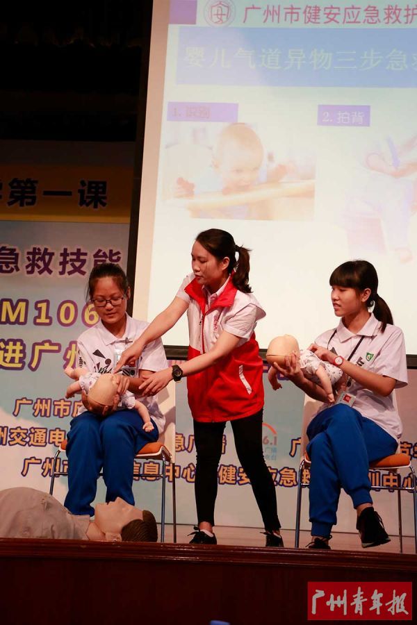 “幼儿被异物堵塞气道,医生不在场时,幼师要如何处理?”为增强未来幼师的急救技能,应急安全公益大讲堂特别针对幼师学生进行了气道异物现场急救术(海姆立克急救法)的讲解和现场示范。