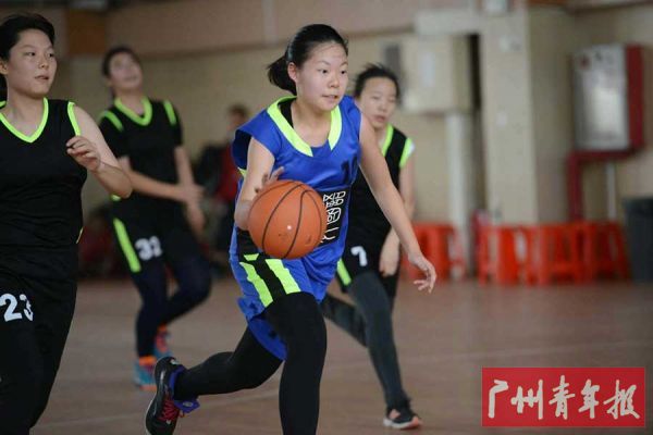 她是校队女篮队长,球风稳、准、狠,图为杨思远在天河区 中学篮球比赛中。