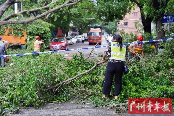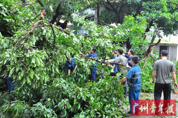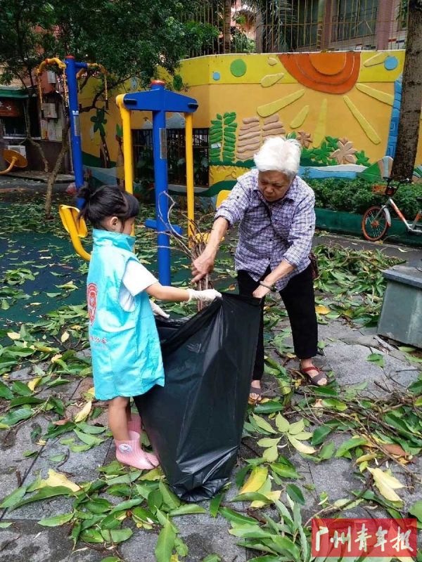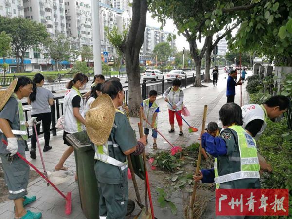 日期:[2018-09-20] 版次:[A08] 版名:[青视觉]9月16日,台风“山竹”强势来袭,给广州市带来了严重影响。市委市政府要求各区各单位努力把台风影响降到最低程度,保障人民群众正常生活秩序。为充分发挥共青团组织的生力军和突击队作用,团市委、市志愿者联合会于16日发出紧急倡议书,号召全市各级团组织、广大团员青年和青年志愿者积极响应市委市政府部署,立即行动起来,迅速组织开展台风“山竹”灾后环境清理等工作。广大团员青年和青年志愿者在所在组织、单位统一安排下开展路面清淤、清理树枝树干及打扫道路卫生等工作,充分展现广州青年、青年志愿者良好精神风貌。