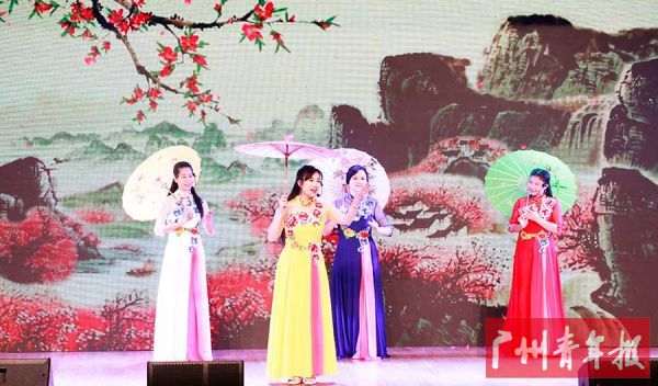 据悉,本次诵读活动的展演单位覆盖了中小学及幼儿园,还有广东省朗诵协会的加入,节目形式丰富多样,表达了不同年龄层的人们对中华经典的喜爱与传承。瞧,荔湾区少年宫的开场舞蹈《中秋花海月儿圆》伴随着欢快悠扬的乐韵,带领大家进入中秋美景。广东省朗诵协会带来个诵《月亮升起的地方》和群诵《诗意中国》(如图),让现场观众聆听到专家级别的诵读魅力。广州市南海中学的同学们以雄厚的声音诵读《金秋皓月》,讴歌祖国的辉煌成就;广州市荔湾区康有为纪念小学表演的诵读节目《岳阳楼记》和粤剧节目《彩云追月》可谓是刚柔并济,相得益彰……中华传统文化需要传承,幼儿园小朋友表演的粤语童谣《月光光,照地堂》、《月姐姐》更是充满童真,蕴含广州风俗民情,让现场观众重温经典,更感受了听觉与视觉的盛宴。