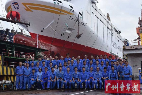 2018年春节临近,搭载三课装焊工段负责的Stena A型13号船烟囱完成装焊火工作业,并且一次性通过报验。此举标志着该型船所有船体作业全部完成,同时也是荔湾厂区最后一艘民船圆满完工。当时,为了第一时间完成交船任务,装焊工段的员工在2月4日,农历立春当天赶赴长洲岛进行作业。A13船烟囱与其他船型船体结构不同,内部没有刚性结构,安装过程中容易发生变形,极难矫正。施工单位提前做好安装方案,进行安全和工艺培训交底,在胸有成竹的情况下开展作业。