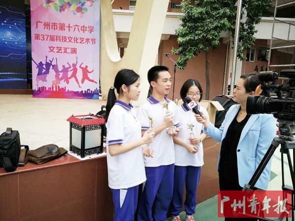 广州市第十六中学的同学捧回金灿灿的特等奖奖杯。