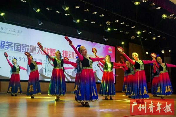本报讯(见习记者 罗亚莉 通讯员 胡勇)来自天河区电大、天河区社区医院的阿姨们化身为新疆姑娘,伴随着音乐展示轻盈又曼妙的舞姿;天河区老干部国标舞队的叔叔阿姨们挥动着队旗,现场表演高难度“托举动作”;一曲耳熟能详的《赛马》在陶笛的演奏下夺得观众的阵阵掌声……11月11日上午,2018年广州市全民终身学习活动周启动仪式在天河区广州市第一一三中学(五山校区)顺利举行。本届活动周由广州市教育局主办,天河区教育局承办,以“服务国家重大战略,推动全民终身学习”为主题。广州市教育局党组成员、主任督学谷忠鹏,天河区副区长饶洁怡,天河区教育局副局长王建辉等领导出席活动。市、区教育部门有关领导,各区社区学院(学校)代表、市民代表、媒体代表及社区居民600多人参加启动仪式。