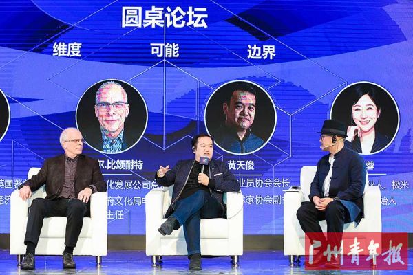 在圆桌论坛上,围绕中国文创IP时代的相关话题,来自英国的著名经济学家、“世界创意产业之父”约翰·霍金斯(John Hawkins),加拿大魔方文化发展公司总裁丹尼尔•比颂耐特(Daniel Bissonnette),澳门漫画从业员协会会长、广州市动漫艺术家协会副主席黄天俊以及黑洞投资合伙人、极米科技联合创始人杨蓉展开热烈讨论。