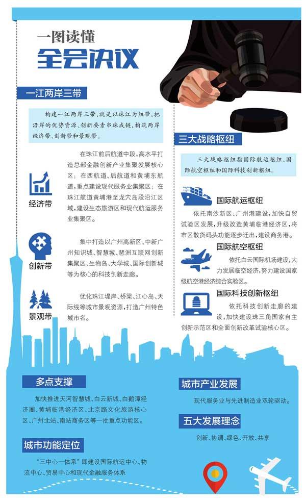 广州市委副书记、市政府常务副市长陈如桂介绍称,在“十三五”期间,广州除了会形成“一江两岸三带、三大战略枢纽、多点支撑”发展格局外,结构上,产业优化升级将会加快;动力上,也将从过去主要依靠要素驱动转向未来靠创新驱动。