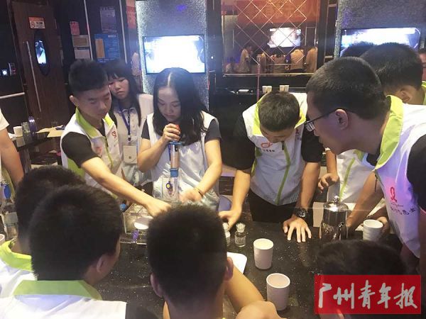 南沙团青汇的社工们以工作坊的形式,带领北达技工学校16名青少年禁毒志愿者实地进入娱乐场所开展《禁毒小剧场-KTV禁毒宣教》活动。经过前期的剧本推敲、演员数次编排,志愿者分组扮演生活中的普通人,上演了4场禁毒小剧场。