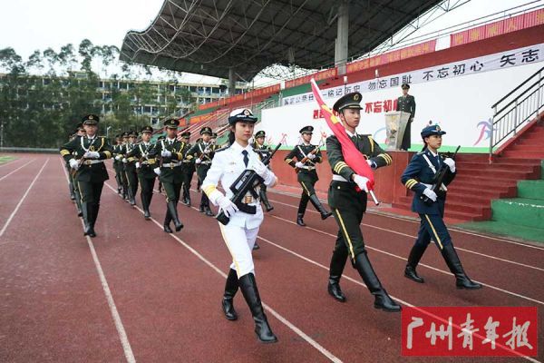 随后,学校党委书记欧卫国做主题发言:“只有以史为鉴,才能面向未来。作为有着红色传统的广大附中,传承红色基因是我们的使命。‘天下兴亡,匹夫有责。’我们广附人要自觉地把今天的学习同祖国的繁荣昌盛,中华民族的伟大复兴结合起来,学好知识报效国家。”伴随着低沉的思念号角声,国防班学生代表宣读《和平宣言》,用嘹亮之声追溯悲壮的历史,庄严地祈愿和平。