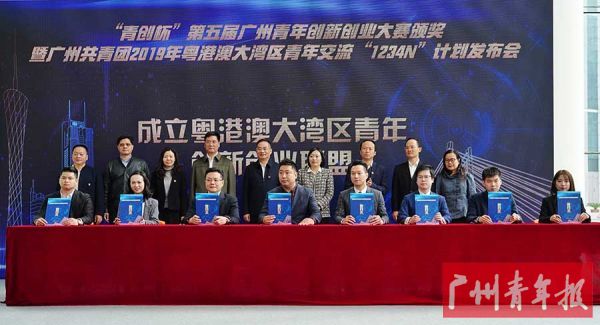 本报讯(记者 胡媛媛 通讯员 李英杰 摄影 黄宇帆)2018年12月27日上午,“青创杯”第五届广州青年创新创业大赛颁奖暨广州共青团2019年粤港澳大湾区青年交流“1234N”计划发布会在广州国际媒体港成功举行。主办方为“青创杯”第五届广州青年创新创业大赛获奖项目代表颁奖并启动了第六届广州青年创新创业大赛,发布了广州共青团2019年粤港澳大湾区青年交流“1234N”计划,并联合香港、澳门、深圳、东莞、中山等粤港澳大湾区集群城市的青年就业创业机构、社会组织共同发起成立了粤港澳大湾区青年创新创业联盟。
