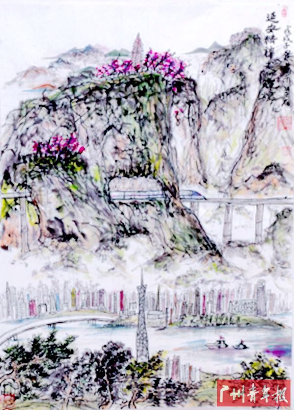 来自天河区先烈东小学(珠江新城校区)的杨子杰同学绘画的《延安精神 走向辉煌》夺得小学组绘画一等奖。记者在采访中了解到,子杰同学以“广州塔”与“延安塔”两座标志性的建筑为主要元素,寓意广州城的现代化变迁、延安精神的枝繁叶茂;而作品中间的高铁寓意着时代的高速发展,同时也给人一种串联两城精神文明,推进两城合作交流的美好愿景。