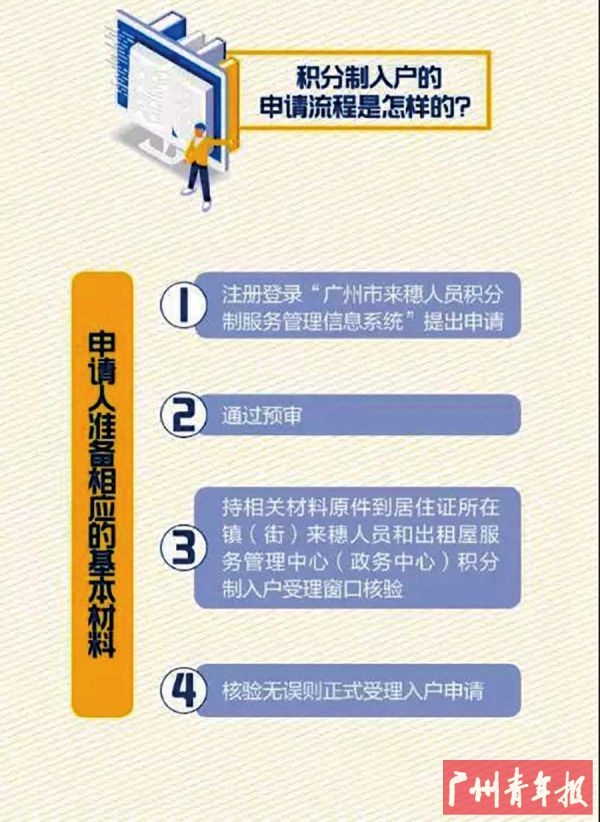 参加2018年度积分制入户的来穗人员,需于2019年1月25日之前申请积分或提出积分调整,并于2019年3月25日17时前登录“广州市来穗人员积分制服务管理信息系统”提出积分制入户申请,持相关材料原件到积分制入户受理窗口核验并确认入户意愿。所有积分材料计算时间节点截至2018年12月31日。