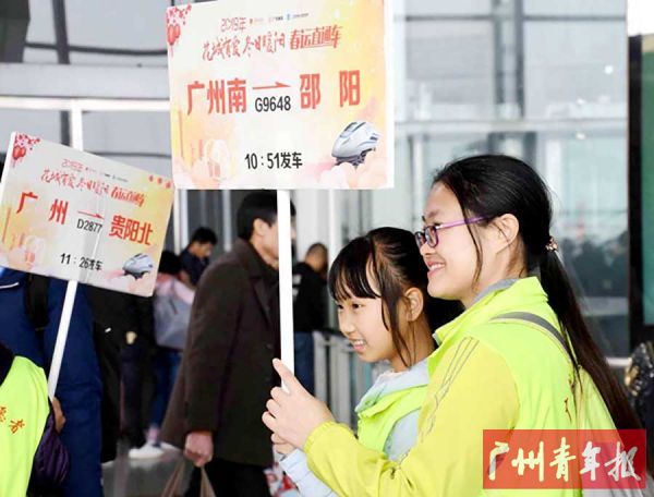 在春运次日从广州南开往邵阳的复兴号G9648次高铁上,来自社会招募以及邵阳线志愿者队的40余名随车志愿者,从场外的临时取票、进站指引到物资卸货,方方面面都考虑齐全,地铁站、候车室、安检区到处都是他们忙碌的身影。宁茂林,是随车志愿者的领队,同时也是一名湖南在穗求学的学子,曾获得广州市优秀共青团员、邵阳市优秀志愿者称号。宁茂林表示,“因为家里困难,加上买票难,已经两年没有回家了,今年我得知自己中签的时候真的很激动,春运直通车可以让很多像我这样的求学人员和务工人员安心回家,所以我想将感受到的这份温暖传递给更多的人。”