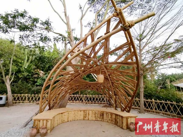 图二《巢亭》是钟冠球老师指导的一群华工大学生群策群力的成果,也是本次大赛的获奖作品。《巢亭》的灵感或许来自鸟巢,婆娑的茅草加上竹编的枝干犹如黑天鹅用水草编织的窝。